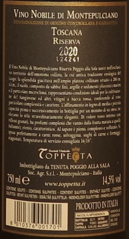 2020 VINO NOBILE DI MONTEPULCIANO RISERVA D.O.C.G.