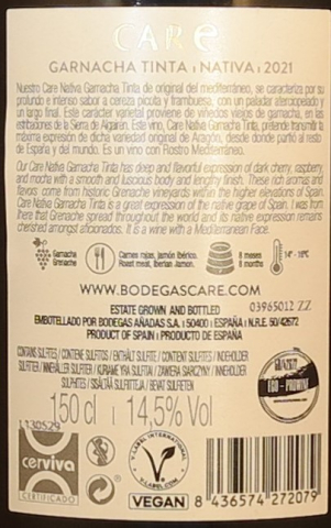 - Die Lese erfolgt von Hand in kleinen Körben. Nach einer 7-Tägigen Mazerationsphase wird entrappt und das Traubengut ohne weiteres Pressen in die konischen Gärbehälter aus Edelstahl verbracht. Die Fermentation erfolgt temperturkontrolliert bei ca. 29°C. Na