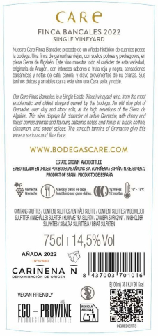 - Die Reben für den Finca Bancales wachsen in einigen wenigen, selektierten Weinbergen des namensgebenden Gutshauses. Die Rebstöcke sind im Mittel ca. 80 Jahre alt und ergeben daher nur niedrige Erträge. Die Lese erfolgt von Hand in kleinen Körben, nach der