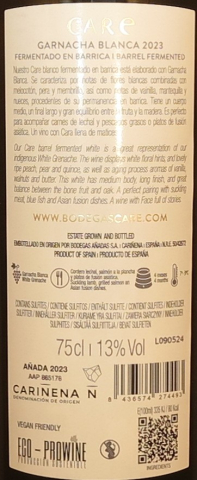2023 Garnacha Blanca Barrel fermented Cariñena D.O.