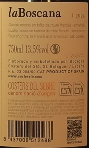 2024 la BOSCANA TINTO Costers del Segre D.O.